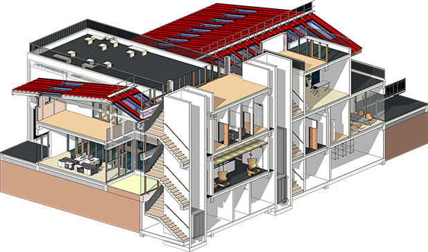 • Roofing, battens, roofing layers, thermal insulation, vapour barrier, roof trusses and timber structure.